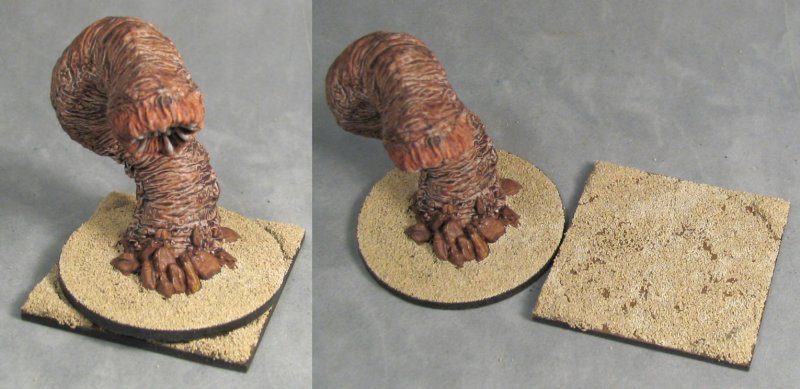 Some comparison shots. Above a Harbinger of Isis takes on the Sandworm. Below, the time travelling adventurers Zehuti and Somarra are surprised by the Sandworm's sudden entrance.